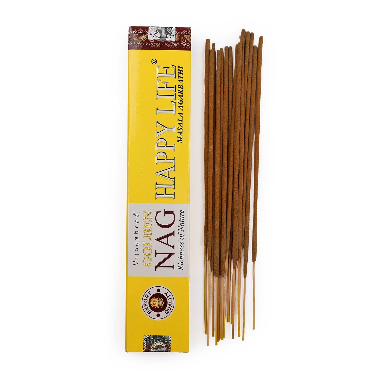 Vijayshree Golden Nag Happy Life viiruk on loodud levitama lõõgastavat lõhna , mis soodustab head tuju ja heaolu. See India viiruk on valmistatud harmoonilisest segust ürtidest, vürtsidest, lilleekstraktidest, eksootilistest õlidest ja muudest looduslikest koostisosadest ning on käsitsi keeratud traditsioonilisel masala meetodil.