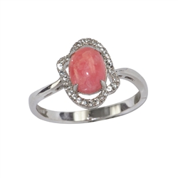 Roodiumiga kaetud 925 hõbedast rodokrosiidiga elegantne disainsõrmus, ümbritsetud teemantlõikes valgete looduslike topaasidega.