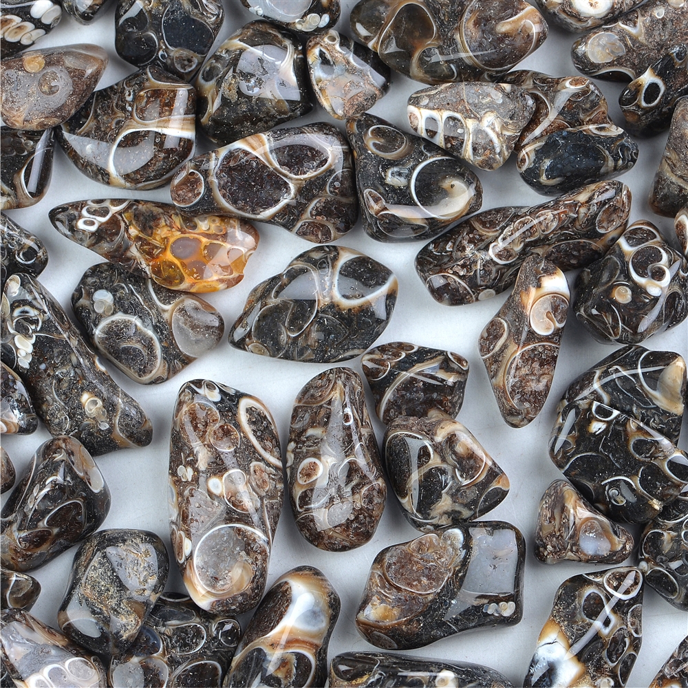 TURRITELLA AHHAAT soodustab tugevust ning omab kaitsvaid omadusi. Ühendab meie planeedi, kodumaa ja esivanemate energiatega. Aitab meenutada eelmisi elusi, neist pärineva energia ja annete kasutamise oskuse. Turritella ahhaat aitab lahti lasta minevikuga seotud emotsionaalseid probleeme ning on eriti abiks juhul kui te ei suuda andestada kellelegi tema poolt tehtut. Kui tunnete, nagu oleksite alati ohver, siis aitab see kivi teil teid tagasi hoidvad allasurutud emotsioonid vabastada ja lahustada ning tervenda kõiki tervisega seotud probleeme, mis on seotud minevikus toimunud sündmustega. Turritella ahhaat on ka kivi, mis aitab saada ühendust minevikuga - oma esivanemate, kodumaa või maaga, kust on pärit teie esinevamad. See kivi toetab eelmiste elude meenutamist ning aitab saada kontakti minevikust pärit tarkusega. Turritella ahhaati võib asetada ohustatud või probleemse piirkonna kaardi või foto peale, et neid paikasid puhastada ja energiseerida. Kaitsev, hirme lahustav ja lähedastega ühendust hoida aitav turritella ahhaat on hea kivi kõigile neile, kes sageli reisivad. See kivi aitab üle saada põlevast soovist millegi järele, mida meil tegelikult kõrgema plaani järgi vaja ei ole. Turritella ahhaat võimendab sisemist tasakaalu, meelerahu ja küpsust ning toetab suhetes truudust. Turritella ahhaadil on tugevad tervendavad omadused ning eriti hea on see kivi kõigi vananemisega seotud tervisehädade korral - nagu veenilaiendid, sapikivid ja seedeelundkonna probleemid. Turritella ahhaadist on abi ka rasestumise ja viljakusega seotud probleemide korral.